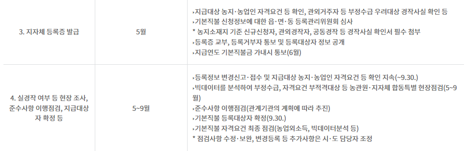 또한 경작지의 지번이나 면적 정보가 변경되었다면 관할 기관에 사전 정정 요청을 해야 불이익 없이 직불금 수령이 가능합니다. 미리 서류를 챙기고 확인해보는 것이 좋겠죠?