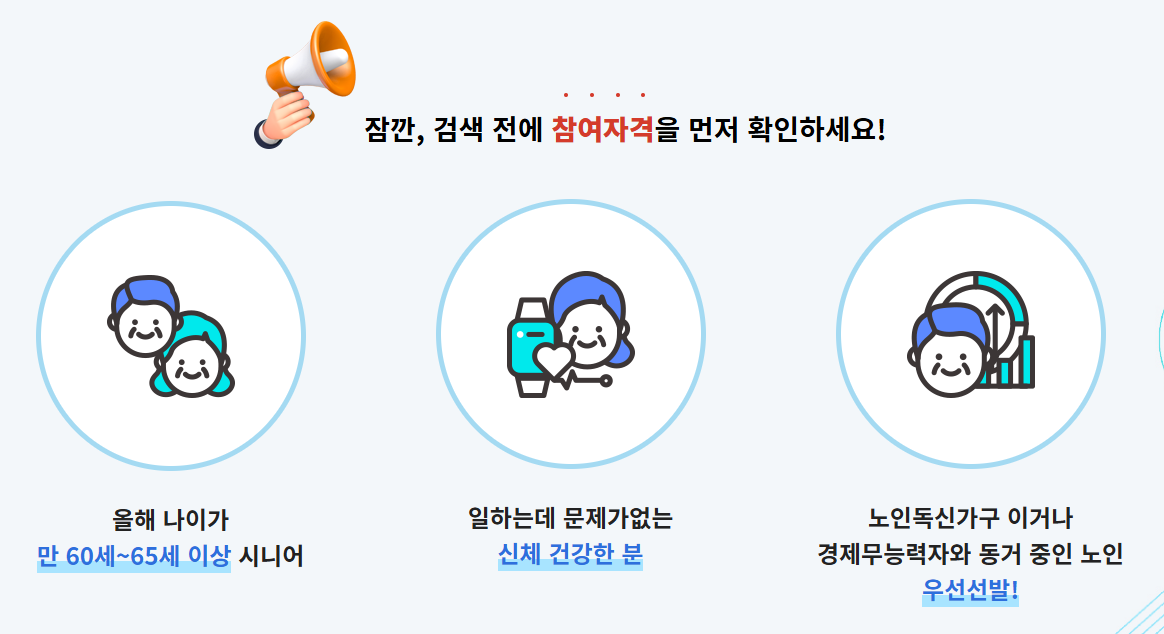 시니어 일자리에 참여하려면 일반적으로 만 60세 이상(일부 공익형은 만 65세 이상)의 연령 요건을 충족해야 해요. 일부 민간 일자리나 지역사업은 55세부터 가능하기도 해요.