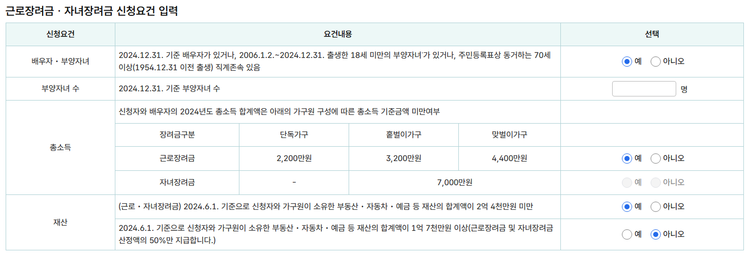 소득 조건만 충족한다고 해서 반드시 근로장려금을 받을 수 있는 것은 아니에요. 신청 가구의 총 자산이 2억 원을 초과하면 장려금 지급 대상에서 제외돼요.