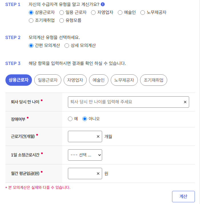 실업급여 모의계산은 고용노동부 고용보장 홈페이지에서 제공하는 ‘모의계산기’를 통해 쉽게 할 수 있어요.