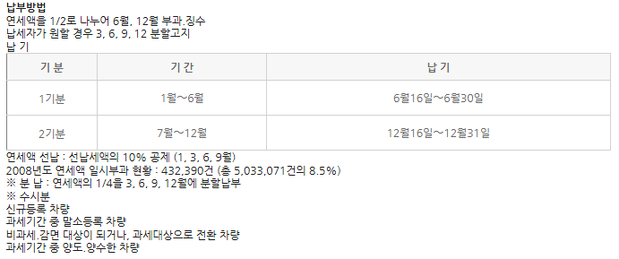 단, 연납을 하지 않은 경우에는 상반기와 하반기로 나눠 두 번 납부하게 돼요.