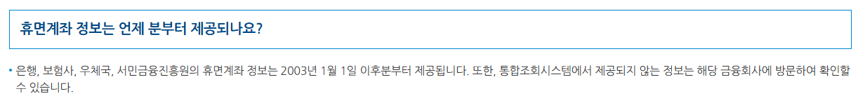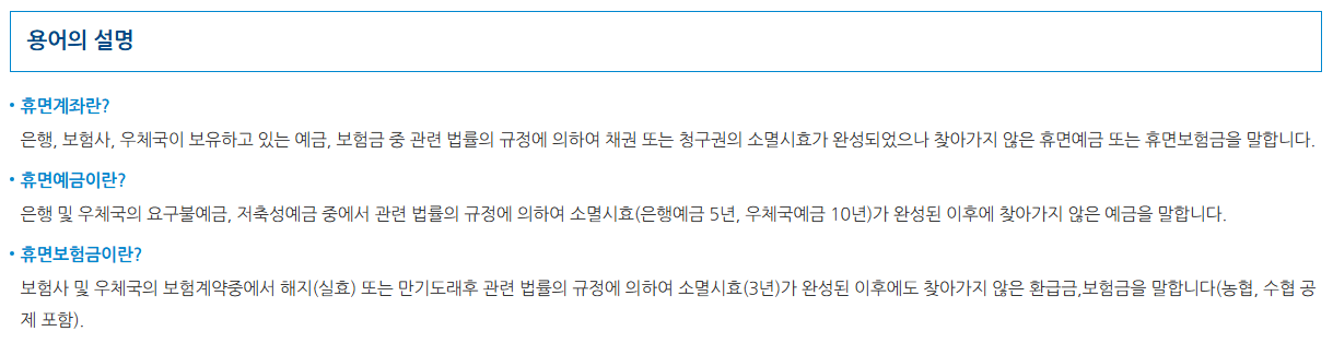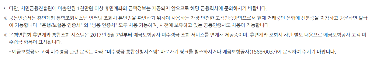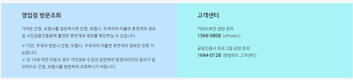 이러한 계좌는 고객이 잊고 지나가기 쉬운 만큼, 관련 기관들은 통합조회 서비스를 통해 정보를 쉽게 제공하고 있어요.
