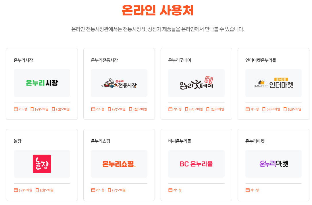 예전에는 전통시장에 한정되었던 사용처가 이제는 일부 프랜차이즈 가맹점으로도 확장되었어요.