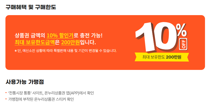 Q. 온누리상품권 10% 할인은 연중 내내 가능한가요?