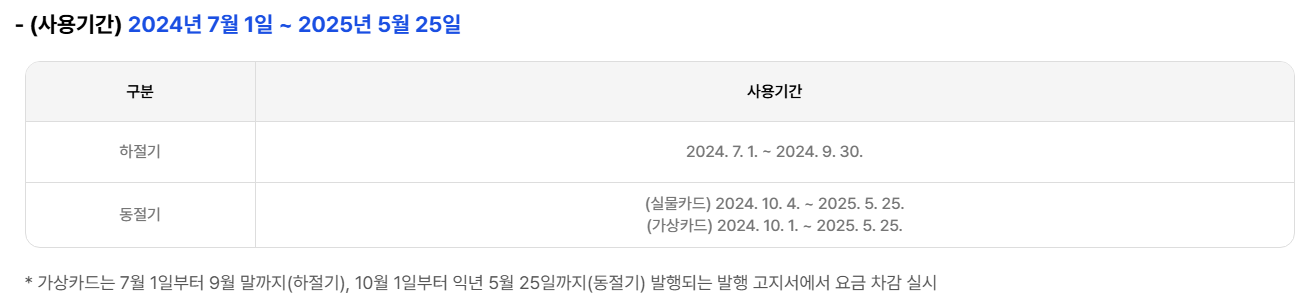 동절기 역시 마찬가지로 2025년 5월 25일 이후엔 잔액을 사용할 수 없어요. 그러니 반드시 캘린더에 날짜를 표시해두고, 기간 안에 사용하는 습관을 들이는 게 중요해요.