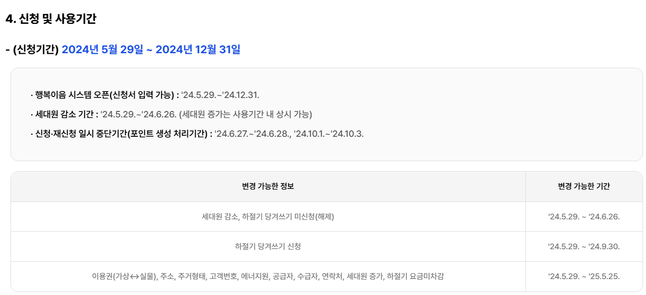 동절기 바우처는 2024년 10월 1일부터 2025년 5월 25일까지로 총 8개월에 걸쳐 사용 가능해요.