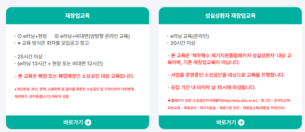 또한 일부 과정은 수료 후 후속 지원(재창업 컨설팅, 정책자금 안내 등)으로도 연결되기 때문에 단순 교육을 넘어서 실질적인 도움을 받을 수 있어요.