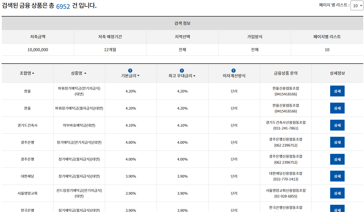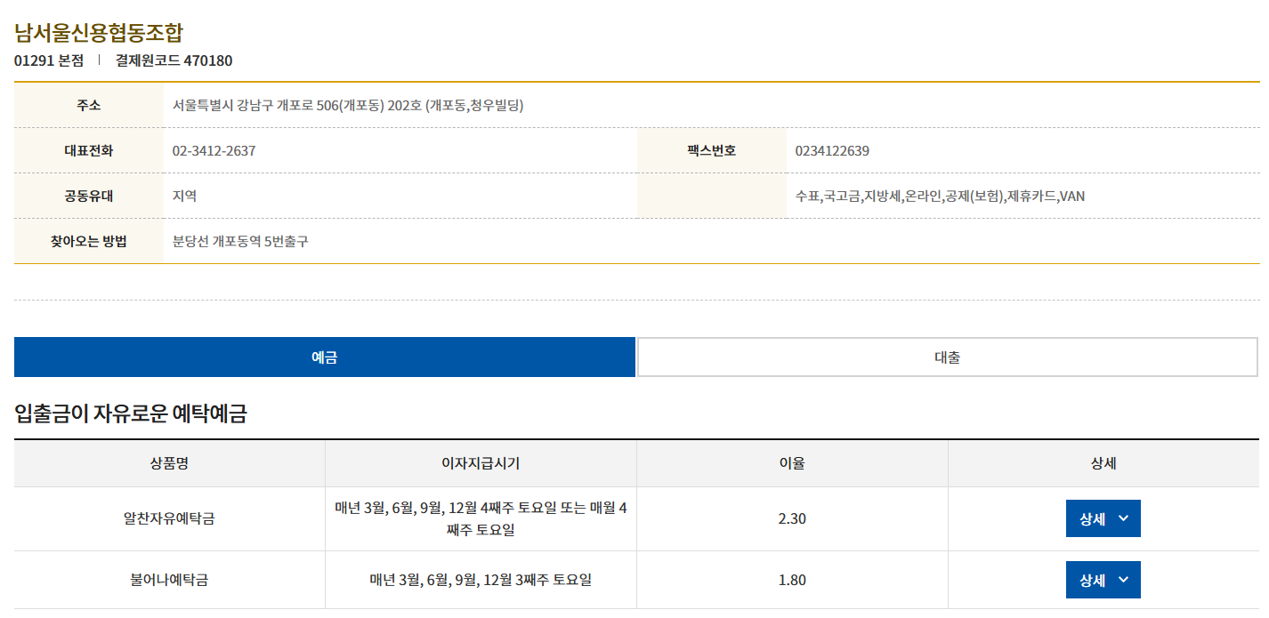 중앙은행 산하 시중은행과 달리, 신협은 각 지점이 별도로 금리를 결정할 수 있어서 같은 정기예금이라도 금리가 0.5% 이상 차이나는 경우도 있어요.