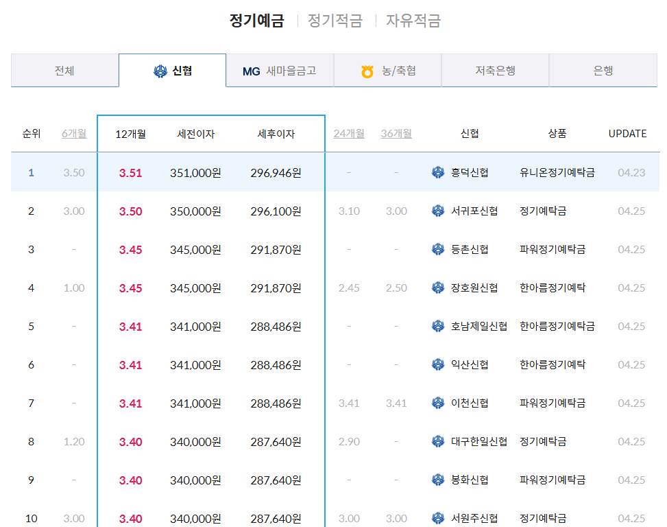 신협 정기예금 금리비교