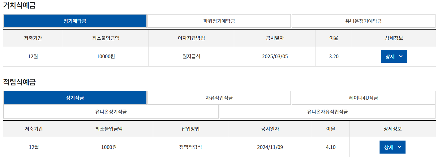신협 정기예금 금리비교