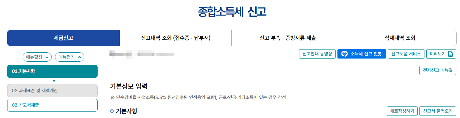 홈택스에서 신고 시작하기