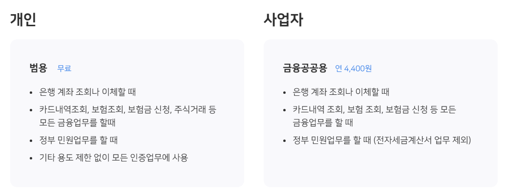 공동인증서 vs 금융인증서 차이
