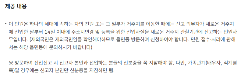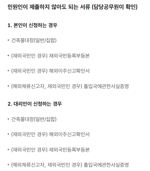 본인의 신분증과 세대주 서명된 동의서만 있으면 처리되니 큰 걱정은 하지 않아도 돼요.