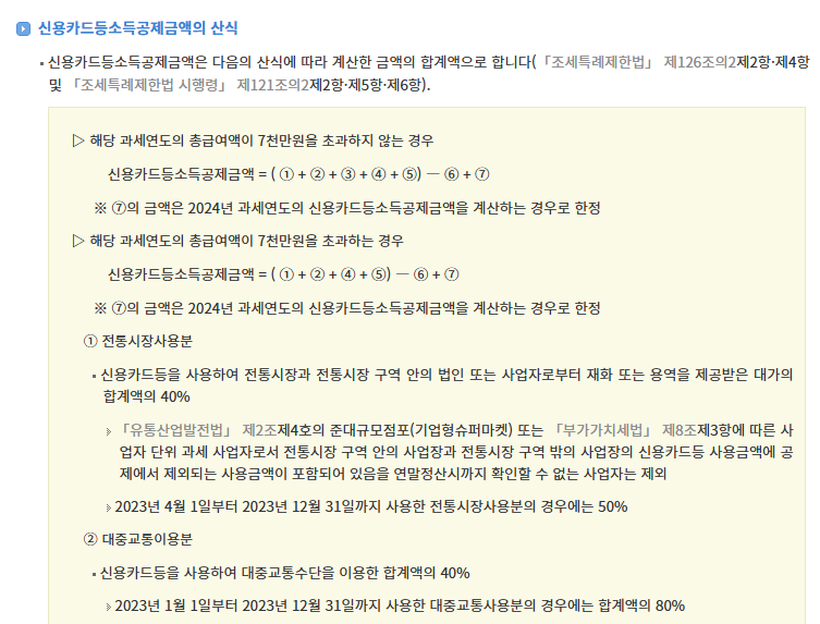 이 한도는 모든 카드 사용 금액을 다 합친 총액 기준이 아니라, 공제율 적용 후 계산되는 금액을 말해요.