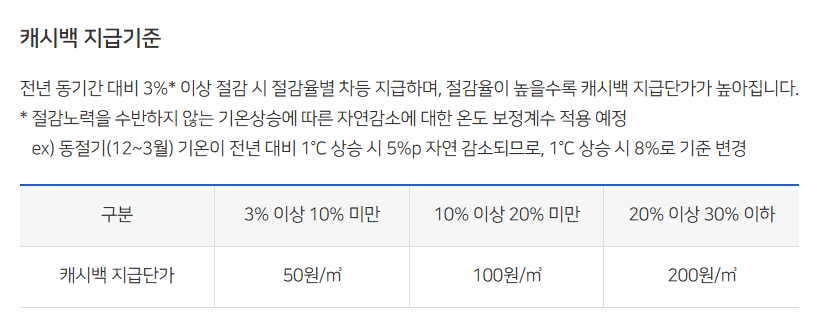 2025년 현재, 전년 같은 기간보다 가스 사용량을 줄이면 ㎥당 100~200원의 캐시백을 받을 수 있어요.