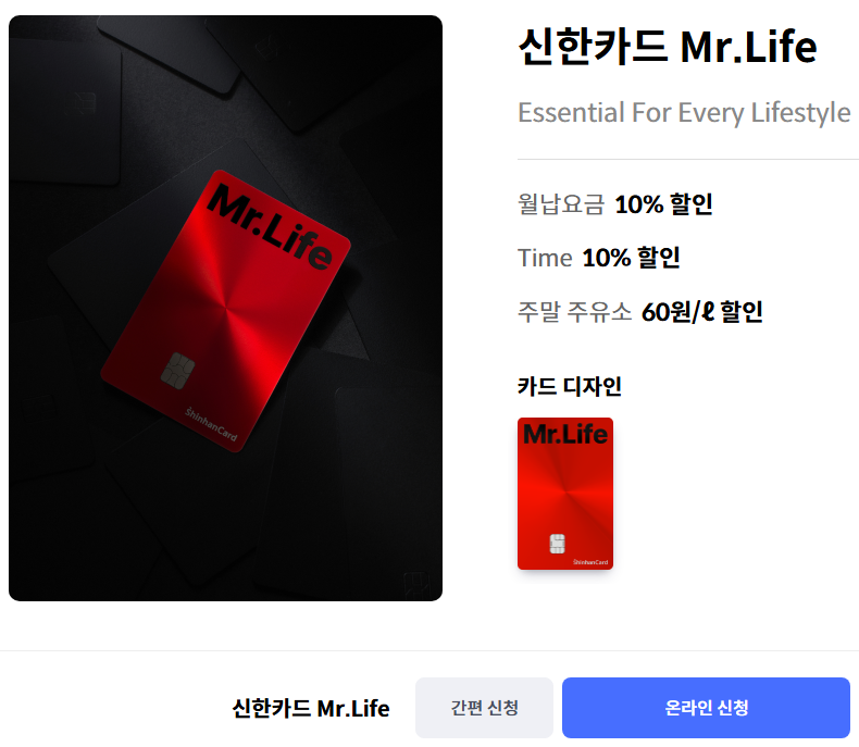 신한카드 Mr.Life는 도시가스 자동이체 시 월 최대 1만원까지 청구할인을 제공합니다.