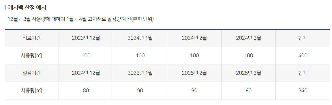 반드시 ‘절감률’이 기준이 됩니다. 예를 들어, 작년 겨울에 400㎥를 썼다면 올해는 350㎥ 이하로 줄여야 일정 캐시백 대상이 되는 식이에요.