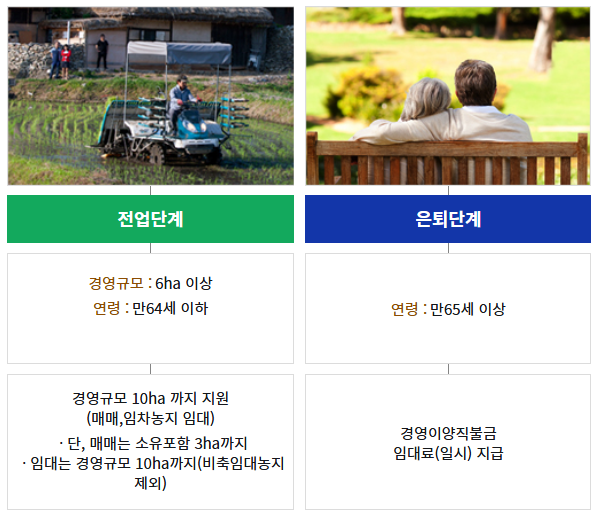 또한 최근에는 영농포기자, 귀농 귀촌인 등 다양한 대상에게로 범위가 넓어졌어요.