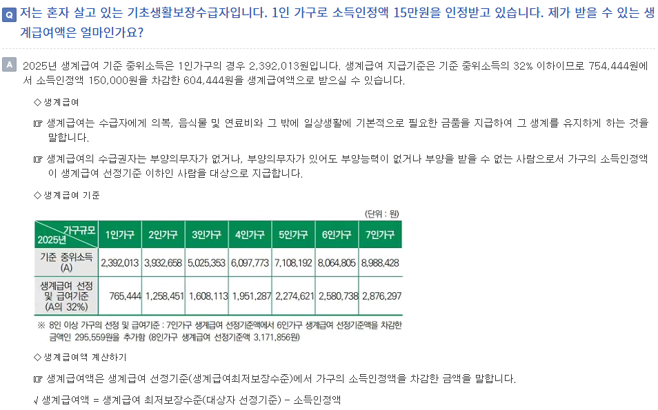2025 생계급여 금액 인상