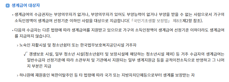 생계급여 수급자 혜택 총정리