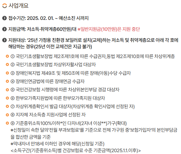 2025년에는 친환경 보일러 교체를 유도하기 위한 정책 변화로, 지원금 신청 대상이 더욱 세분화되고 있어요.