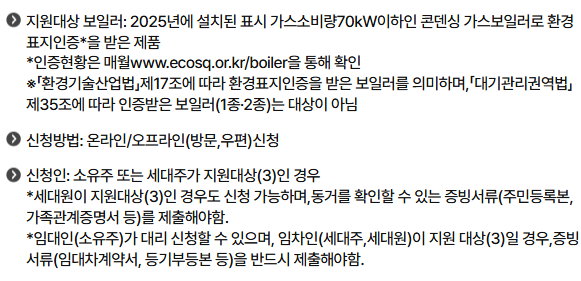 2025년에는 친환경 보일러 교체를 유도하기 위한 정책 변화로, 지원금 신청 대상이 더욱 세분화되고 있어요.