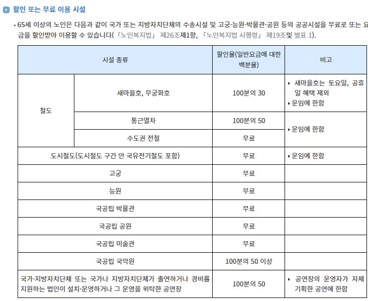 노인 혜택 종류와 조건