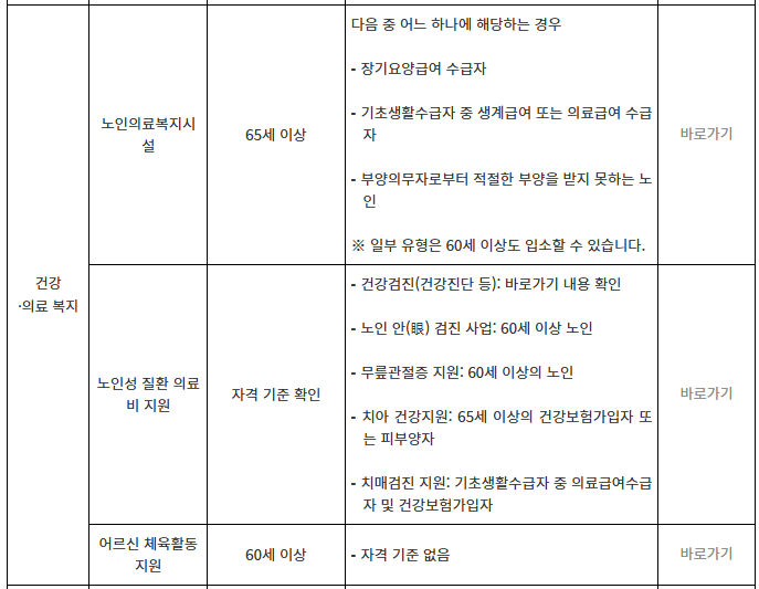 또한, 지자체별로 운영하는 경로당이나 복지관에서는 무료 건강검진, 물리치료 프로그램, 한방진료 등도 받을 수 있어요.