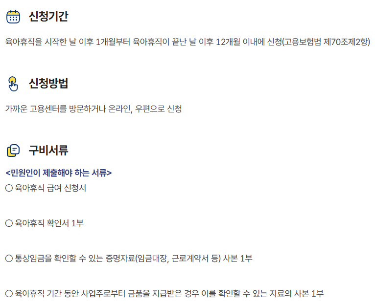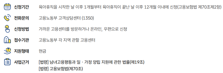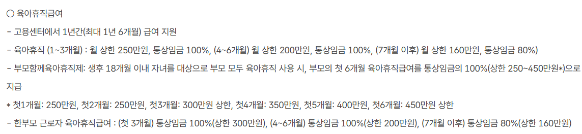 특히 초반에는 출산휴가와 겹치는 경우가 있어서, 이중 급여 수령이 안 되도록 시기를 잘 조절해야 해요.