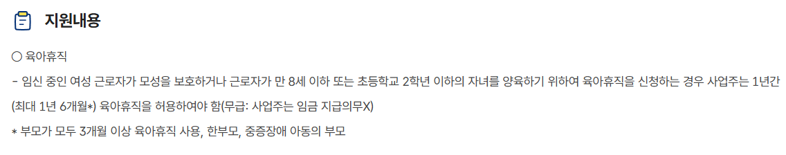 고용보장 가입 여부, 육아휴직 가능 기간, 그리고 자녀의 나이 조건 등이 주요 기준이 됩니다.