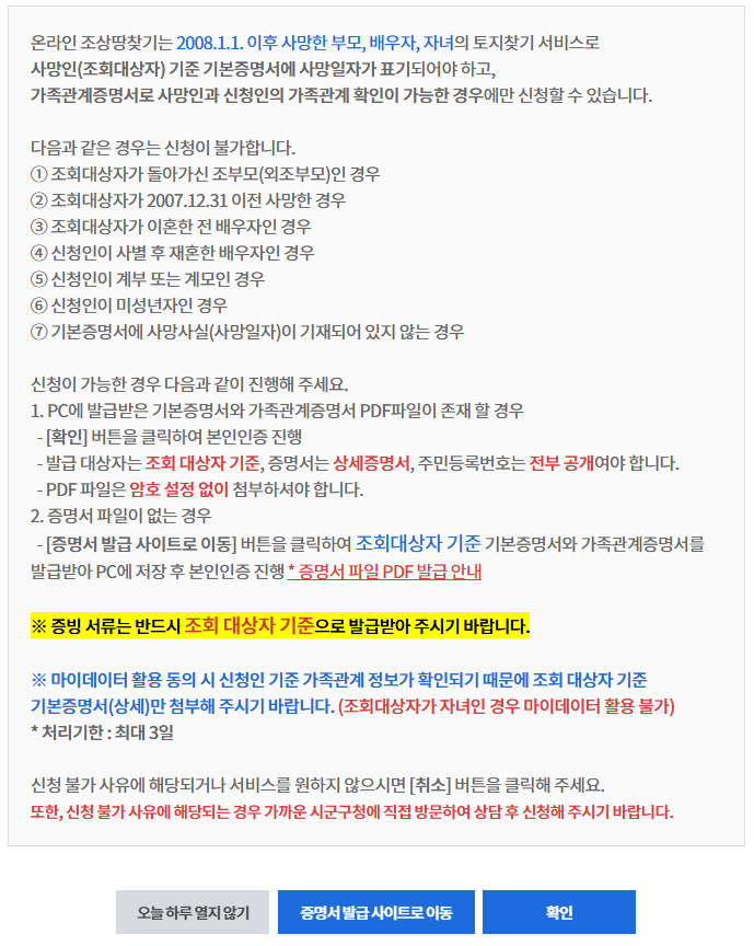 조상땅조회는 사망 사실이 확인된 경우만 가능한가요?