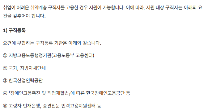 또한 비영리기관이나 공공기관의 경우에는 일부 고용지원금이 제외되는 사례도 있으니 사전에 확인이 필요해요.