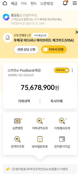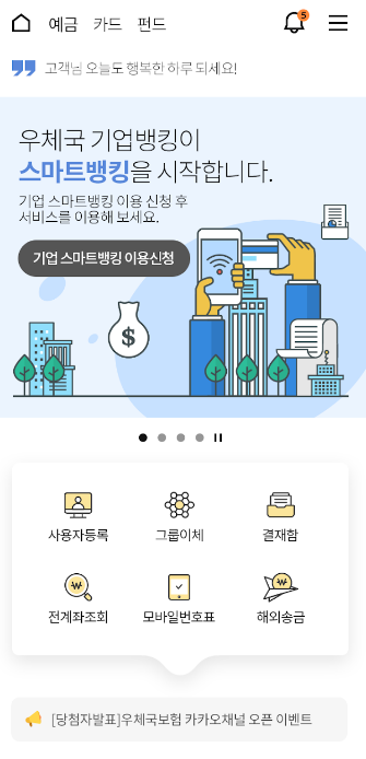 요즘은 대부분 스마트폰을 통해 금융 거래를 하는데요. 우체국도 '우체국 스마트뱅킹' 앱을 통해 정기예금을 간편하게 가입할 수 있어요.