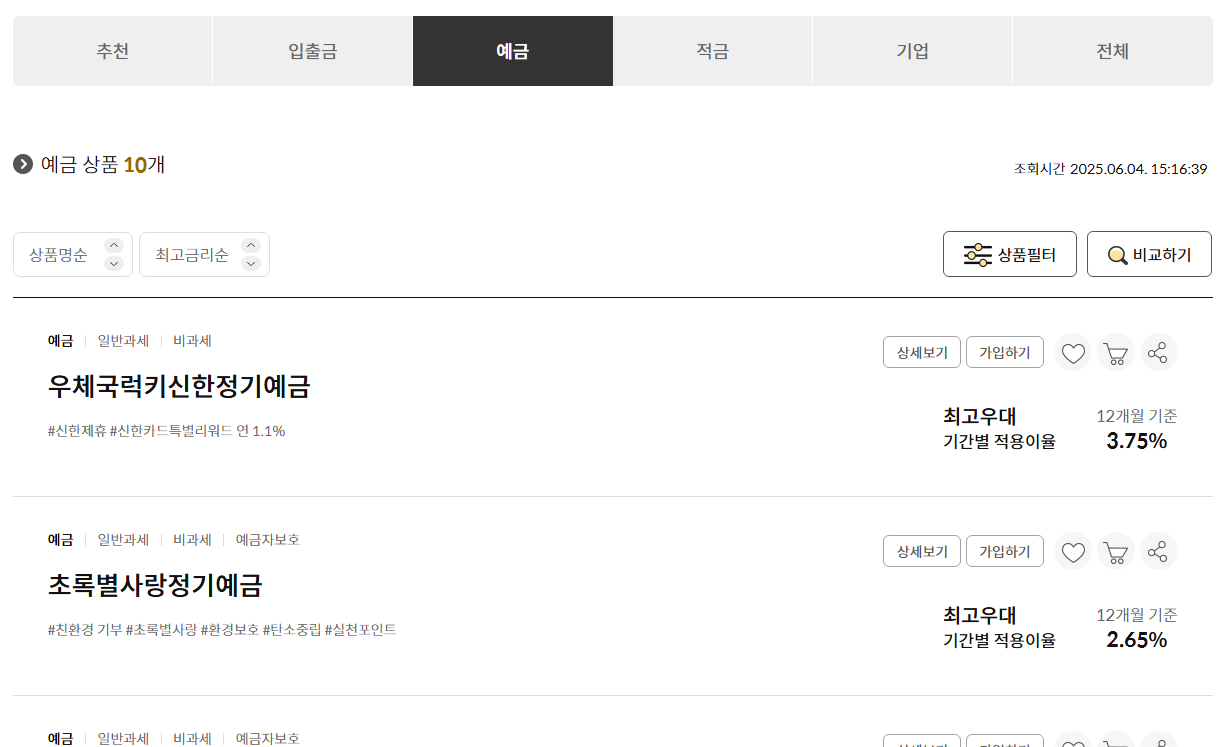 예금 가입 전에는 꼭 한 번 들어가서 원하는 조건의 금리를 살펴보는 것이 어떨까요?