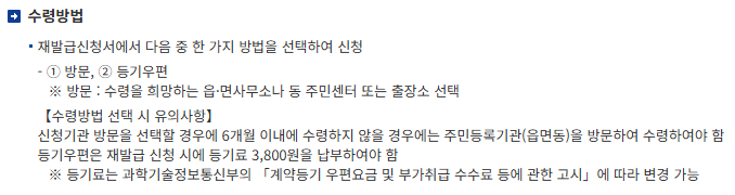 이후 2주 내 지정한 동사무소에서 본인 확인 후 수령하면 됩니다. 수수료는 온라인 카드 결제 또는 계좌이체로 납부할 수 있어요.