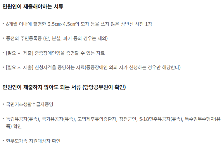 특히 고령자나 청소년의 경우 대리신청은 어렵기 때문에 본인이 직접 준비물을 챙기는 것이 중요해요.