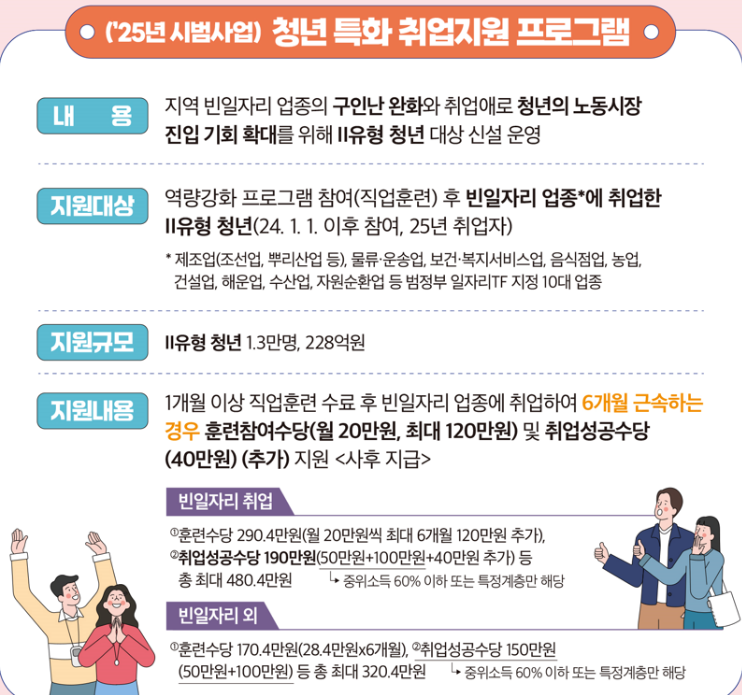청년층(18~34세)의 경우엔 소득기준이 완화되며, 취업경험이 없거나 단절된 상태여도 신청이 가능해요.
