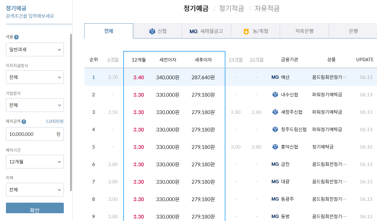 1년 정기예금 금리비교