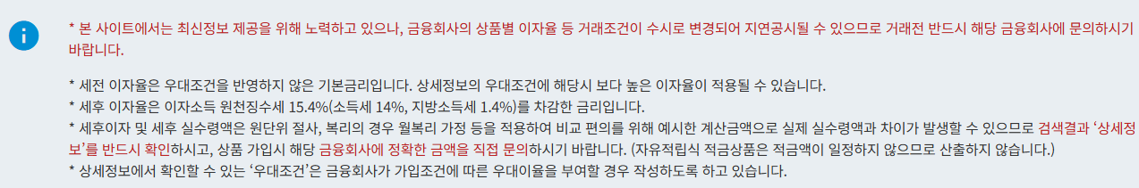 이 사이트들은 전체 금융기관의 1년 정기예금 금리를 실시간 기준 세전으로 제공하므로, 신뢰도 높은 금리비교가 가능하죠.