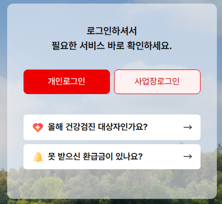 먼저 공단 사이트에 접속한 뒤 '건강iN' 서비스를 클릭하고, 공인인증서 또는 간편 인증으로 로그인하면 결과 항목이 열립니다.