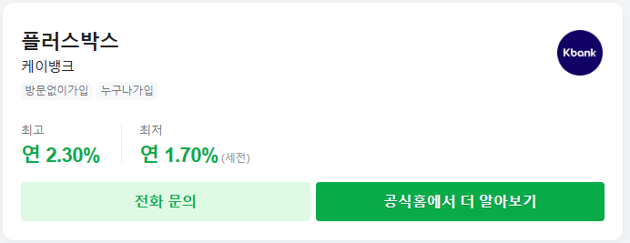 1금융권에서는 전북은행 ‘JB 씨드모아통장’이 연 2.3% 금리로 눈에 띄며, 케이뱅크의 ‘플러스박스’도 연 2.0% 금리를 유지하고 있어요.