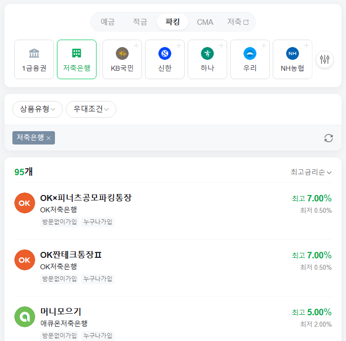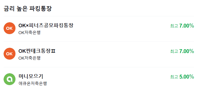 파킹통장 금리비교를 제대로 하려면 이런 주요 상품의 수치를 기준으로 삼는 것이 좋아요.
