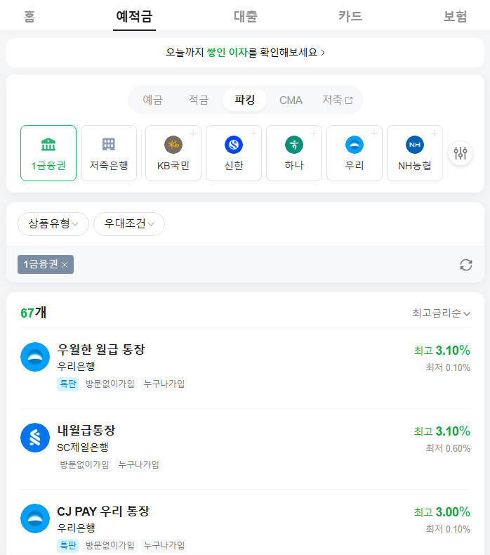파킹통장을 고를 때 가장 먼저 살펴보는 건 역시 금리죠.