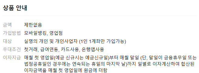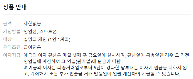 저는 메인 거래은행이 아니어서 살짝 고민했지만, 별도 조건이 없고 이자율이 높아 서브 통장으로 운용 중이에요. 비상금용 파킹통장으로 만족도가 높았어요.