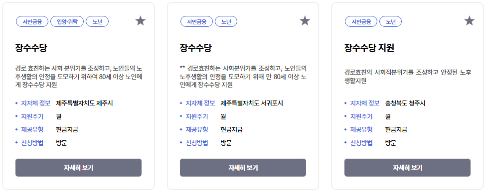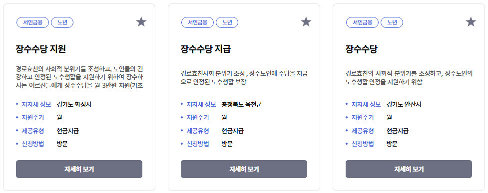 예를 들어 경기도 이천시는 90세 이상 어르신에게 월 3만 원씩 지급하고 있고, 인천 중구는 90세부터 연 1회 장수수당을 20만 원으로 지원 중이에요.