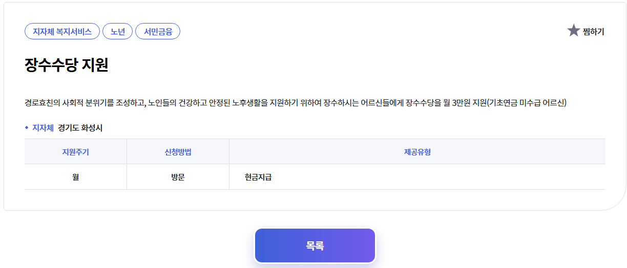 장수수당 지역 조건은 주소지에 따라 결정되니 거주지 복지정책을 꼭 확인해보는 것이 좋아요.