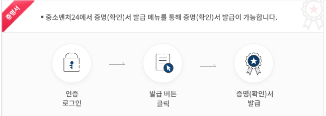 중소벤처기업부의 통합 포털인 ‘중소벤처24’에서도 확인서 발급 시스템으로 연결이 가능해요.