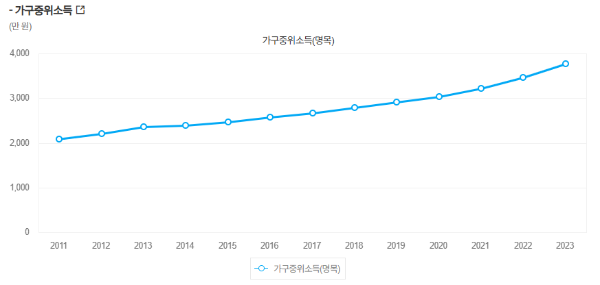 구체적인 계산 결과는 KOSIS의 중위소득 통계표를 통해 직접 확인하실 수 있습니다.