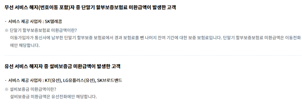 환급 대상은 통신 요금 정산 후 미납 또는 과납이 발생한 경우에 해당해 해지 이용자라고 해서 모두 환급 대상이 되는 것은 아닙니다.