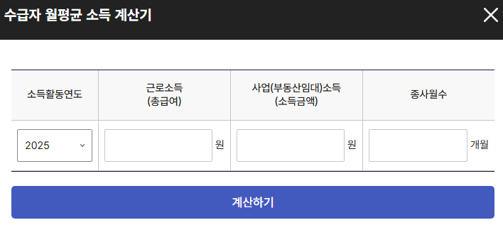 공식 모의계산 서비스가 제공되어 재산과 소득을 입력하면 결과를 바로 확인할 수 있습니다.